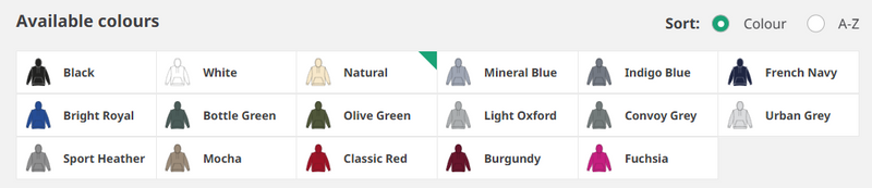 Colour and size chart attached