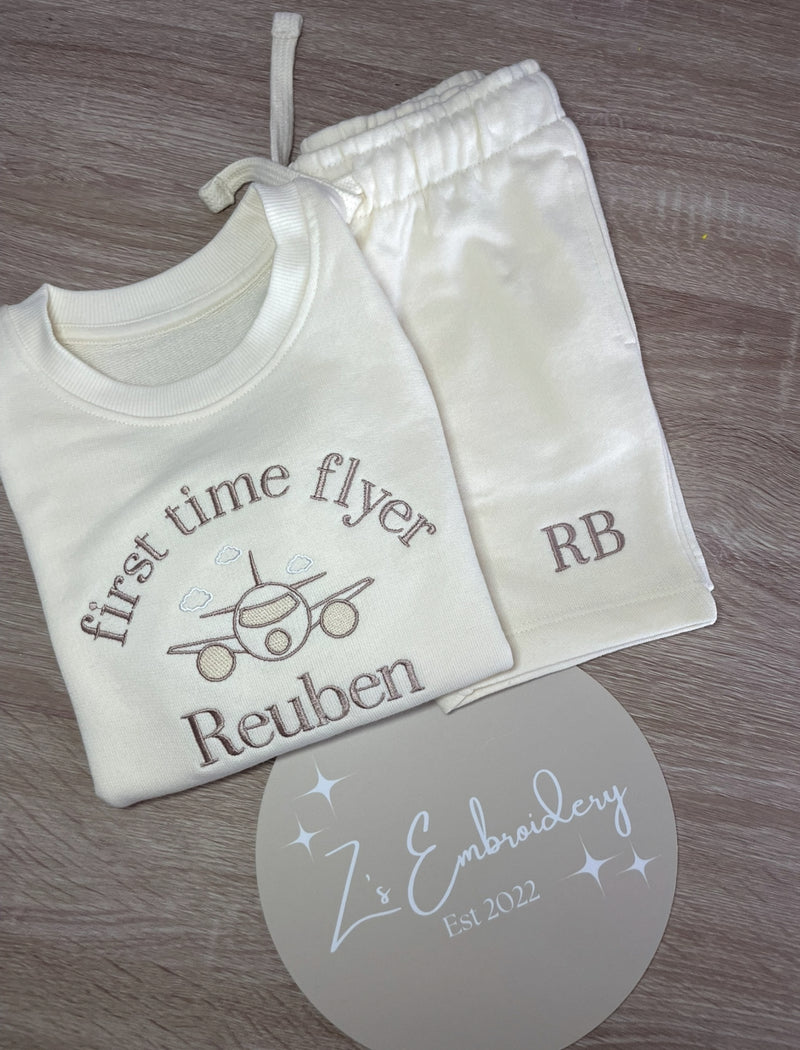 * Relaxed/oversized style sweatshirt* 100% Cotton French Terry fabric* Approx 290-300 gsm* Fine Knit Rib Cuffs and Hem * Adjustable drawstring on shorts * Can say Mini Flyer or First Time, Please specify which one aswell as name