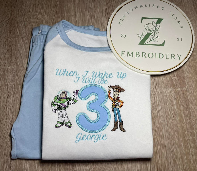 Most design’s available, please add into the personalisation box Name, Age, Theme, If you want “when I wake up” on the front.